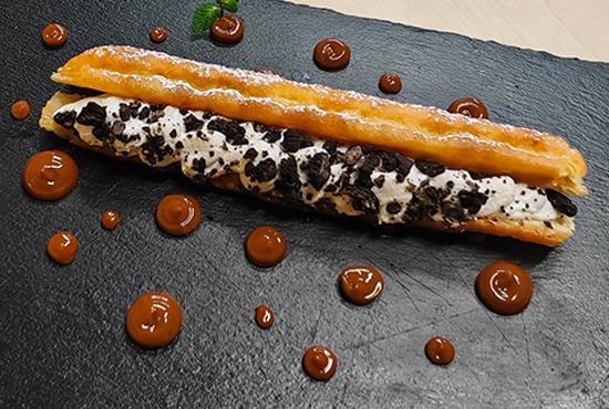 Le Porras sono strisce di deliziosa pasta choux fritta che si differenziano per la forma dritta, diversa dal ferro di cavallo dei tipici churros. Gli abitanti di Madrid conoscono e apprezzano questa sfiziosità, più versatile dei churros, tradizionalmente consumati in abbinamento alla cioccolata calda o serviti con una spolverata di zucchero e cannella in versione messicana. Le porras hanno un impasto più denso e morbido rispetto ai churros, un aspetto che si traduce in una maggiore possibilità di sperimentare. Dal momento che questa pastella può essere cotta anche in forno, diventa un dolce in grado di tentare anche i più coscienziosi che non vogliono avere rimorsi sulla bilancia. Le strisce di pasta possono essere tagliate da un lato e suddivise in piccoli tranci per creare mini panini dolci con un ripieno a base di formaggio spalmabile, lavorato con zucchero e Oreo tritati per un piccolo dessert che coniuga la tradizione spagnola con uno dei sapori più famosi made in Usa, ovvero il Cookies and Cream. Una striscia di porras può essere tagliata a rondelle e servita in accompagnamento a una coppetta di gelato, frozen yogurt o qualsiasi altro dessert al cucchiaio in base all’estro del ristoratore. Un tocco di codette colorate per completare il tutto e si ottiene una delizia per il palato e per gli occhi, in grado di invogliare i palati più giovani e attenti ai trend instagrammabili. Questa versione può essere preparata anche utilizzando i Churro Chocobites, filoncini di pastella fritta ripieni di delizioso cioccolato da tagliare a rondelle per un effetto ancora più sorprendente e goloso.