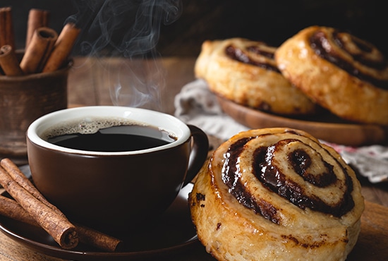 A metà strada tra Paesi del nord Europa e pasticceria anglosassone, incontriamo il classico cinnamon roll. Il dolce impasto si avvolge a spirale, racchiudendo una crema a base di zucchero e cannella, impreziosito dalla glassa con lievi note di limone. L’aromatica e soffice girella alla cannella viene servita in abbinamento con i caffè più trendy del momento, come l’americano o il drip. Le calde sensazioni evocate dalla cannella e dal mix di spezie fanno da contraltare perfetto per l’aroma della bevanda. Con il Classic Cinnamon Roll di Fine Food Group è possibile creare delizie in formato mini, utilizzando due roll come se fossero i bun di un hamburger e usando gelato alla vaniglia per la farcitura. Accompagnato da un caffè caldo, il Cinnamon Ice Cream è una creazione che avvolge il palato con consistenze e temperature in gradevole contrasto. Chi vuole concedersi un dolce ricco e sorprendente può scoprire il Cinnamon Rock Cream, facilmente realizzabile con il cinnamon roll, pezzetti di brownie sbriciolati, granella di nocciole e frosting al cream cheese. Assemblato e impiattato con la massima cura, questo dessert in miniporzione è un trionfo di gusti USA. Una versione sbarazzina è il Cinnamon Smarties, con i famosi confetti colorati di cioccolato adagiati su uno strato di panna, perfetta per i clienti più giovani.